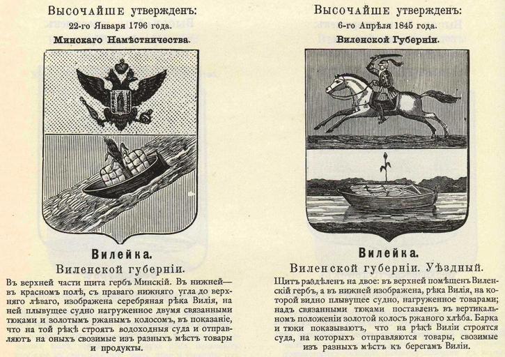 | Keywords: Вилейка 1796 1845 из Винклера.jpg Official Russian Empire coats of arms Vileika Ге бы Российской Импе ии го ода Вилейка 1796 и 1845 годов с официальным описанием в Ге бовнике Винкле а П П фон-Винкле Ге бы го одов губе ний областей и посадов Российской Импе ии внесенные в Полное Соб ание законов с 1649 по 1900 год Дозволено цензу ою С -Пете бу г 20 Июля 1899 года Издание книгото говца Ив Ив Иванова С -Пете бу г Типог афия И Комелова П яжка д 3 1899 \ Scanned by Vizu 1796 1845 \ 1899 published П П фон Винкле \ Pavel von Vinkler PD-old PD-RusEmpire PD-RU-exempt coats of arms Gerbovnik Vinklera - City CoAs Coats of arms of Vilno Governorate Historical images of Pahonia Boats in heraldry |