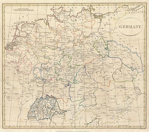 | Keywords: 1799 Celement Cruttwell Map of Germany - Geographicus - GermanySwitzerland-cruttwell-1799.jpg A fine 1799 map of Germany by the English map publisher Clement Cruttwell Includes the regions of Westphalia the Upper and Lower Rhine Circles of Upper and Lower Saxony Lusatia Dutchy of Silesia Moravia Bohemia Swabia Circle of Bavaria Circle of Franconia and the Circle of Austria Switzerland appears in the south Includes rivers political boundaries important cities ports and gulfs Mountains and other topographical features shown by profile Outline color and fine copper plate engraving in the minimalist English style prevalent in the late 18th and early 19th centuries Drawn by Clement Cruttwell and published in the 1799 Atlas to Cruttwell's Gazetteer 1799 dated Size in 15 14 object history credit line accession number GermanySwitzerland-cruttwell-1799 Cruttwell C <i>Atlas to Cruttwell's Gazetteer</i> 1799 Geographicus-source PD-Art-100 Maps by Clement Cruttwell Old maps of Germany 1799 maps Old maps of Switzerland Old maps of Austria Old maps of the Netherlands English language maps of Europe |