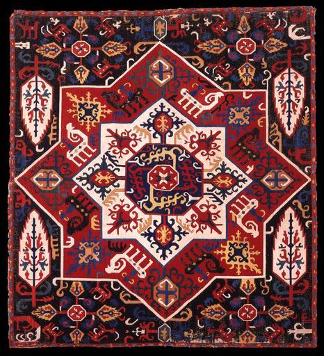 Keywords: 17.17-37-1969-Kaukasisk-broderi.jpg en Caucasus heard until Gulistan-peace from 1813 to the Persian Empire Here was carried out in the 18th century a series of embroideries like was shaped over a central polygon which in this magnificent specimen In addition stylized vegetal ornaments trees and animals and more rarely human figures With their ornamentation and rich but a little gloomy color scheme can recall Caucasian dragon carpets based on nomadic culture world Like them stand embroideries out from the more sophisticated and internationally oriented hofkunst that was produced in the Iranian fa گلیم قلاب دوزی شده قفقازی متعلق به قرن نوزدهم میلادی طرحهای سوزن دوزی شده پیرامون شکلی هشت ضلعی مرکزی گیاهان ودرختان تزئینی و همچنین حیوانات و اشکال انسان نما نیز در طرح ها دیده می شود رنگ های کدر گلیم بازگو کننده فرشهای دارای موجود افسانه ای قفقازی است که فرهنگ و جامعه بیابانگردی را یادآور می شود منطقه قفقاز پیش از عهدنامه گلستان جزء پادشاهی ایران محسوب می شد 18th Institution Davids Samling http //www davidmus dk/assets/428/17 17-37-1969-Kaukasisk-broderi jpg other versions Assessments 1 1 17 17-37-1969-Kaukasisk-broderi jpg cc-zero PD-old The David Collection Rectangular objects Goats in art Flowers in tapestry Trees in art Uploaded with UploadWizard Art of Iran Caucasus |
