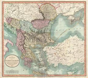 Keywords: 1801 Cary Map of Turkey in Europe, Greece, and the Balkan - Geographicus - TurkeyEurope-cary-1801.jpg An exceptionally beautiful example of John Cary ™s important 1801 map of Turkey in Europe Covers from the Adriatic eastward to Crimea and Southwards as far as Crete and Cyprus While technically a map of Ottoman holdings in Europe this map is essentially a map of Greece and the Balkans Includes the modern day countries of Turkey Greece Albania Macedonia Rumania Bulgaria Moldova Serbia Bosnia Croatia and Montenegro Notes the line of Division between Europe and Asia as it passes through the Black Sea and the Aegean All in all one of the most interesting and attractive atlas maps of Greece and the Balkans to appear in first years of the 19th century Prepared in 1801 by John Cary for issue in his magnificent 1808 New Universal Atlas 1801 dated Size in 20 5 18 5 object history credit line accession number TurkeyEurope-cary-1801 Cary John <i>Cary's New Universal Atlas containing distinct maps of all the principal states and kingdoms throughout the World From the latest and best authorities extant </i> London Printed for J Cary Engraver and Map-seller No 181 near Norfolk Street Strand 1808 Geographicus-source PD-old-100 Maps by John Cary 1801 maps Old maps of Turkey 19th-century maps of the Balkans Maps in English |