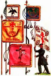 Keywords: Знамена ополчения войск 1812 года.jpg Militia flags of the Russian Empire 1812 Знамена ополчения войск 1812 года 1812 http //retrosit blogspot com/2014/04/blog-post_1795 html unknown other versions insignia PD-RusEmpire Flag charts of Russia Military people with flags of Russia Drawings of militia flags of Russia |