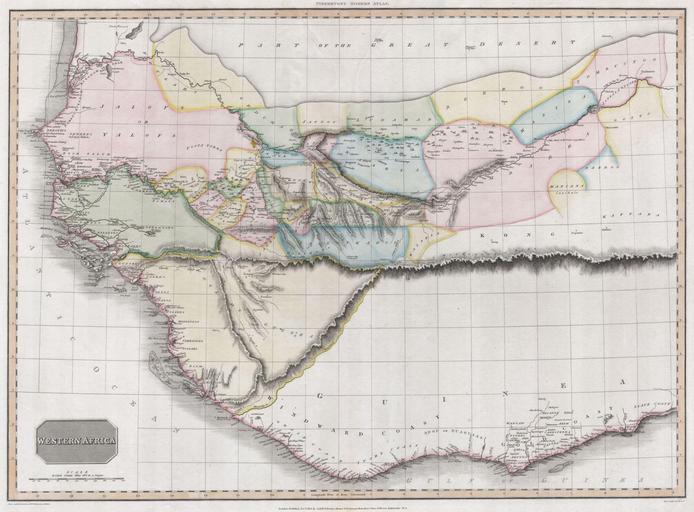 | Keywords: 1813 Pinkerton Map of Western Africa (Niger Valley - Mountains of Kong) - Geographicus - WesternAfrica-pinkerton-1813.jpg This fascinating hand colored 1813 map by Edinburgh cartographer John Pinkerton depicts Western Africa Depicts Africa roughly from the Salve Coast and Gold coast west through the Ivory Coast Guinea the Gambia and north past Cape Verde as far as Senegal Including numerous fascinating Tribal references such as the Kingdom of Brak the residence of the King of Geba or Cabo the Foulahs of Guinea and the Maniana Cannibals among others Offers interesting inland detail along the Niger River as far east as Timbuktu Tombuctoo The continent is bisected by the dramatic and mythical Mountains of Kong which based upon the explorations of Mungo Parks were presumed to be the southern barrier to the Niger River valley Much of the rest of the continent is blank and as such unknown Published in November 1 1813 by Cadell and Davies for inclusion in Pinkerton ™s Modern Atlas 1813 dated Size in 28 20 5 object history credit line accession number WesternAfrica-pinkerton-1813 Geographicus-source PD-old-100 Maps by John Pinkerton Old maps of Guinea Old maps of Senegal Old maps of Mauritania Old maps of Mali Old maps of Liberia Old maps of Sierra Leone Old maps of Côte d'Ivoire Old maps of Ghana Old maps of Togo Old maps of Africa 1813 maps Maps in English Old maps of Guinea-Bissau |