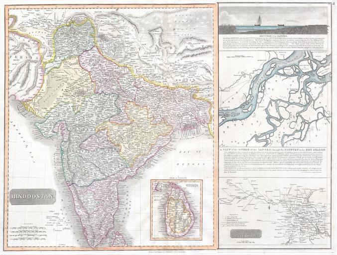 | Keywords: 1814 Thomson Map of India w-Ganges - Geographicus - Hindoostan-t-1814.jpg A magnificent map and the rarest of the Thomson India series This is the 1814 map of India with inset maps of the Ganges River by Edinburgh cartographer John Thomson Depicts the whole of India from Lahore to the idle of Ceylon Shi Lanka Right hand side of the map is dedicated to a careful mapping of the Ganges River Includes a cross-section of the Ganges a map of the course of the Ganges in the dry season and a map of the Inland Navigations routes along the river from the Bay of Bengal to Allahabad This map ™s magnificent size beautiful color and high detail make this one of the finest maps of this region to appear in the early 19th century 1814 Size in 24 20 object history credit line accession number Hindoostan-t-1814 Geographicus-source PD-old-100 Old maps of the Indian Subcontinent Maps of the Ganges River Maps by John Thomson Old maps of Sri Lanka Maps in English 1814 maps of India Sri Lanka in the 1810s Maps of India and Sri Lanka English language maps of Sri Lanka |