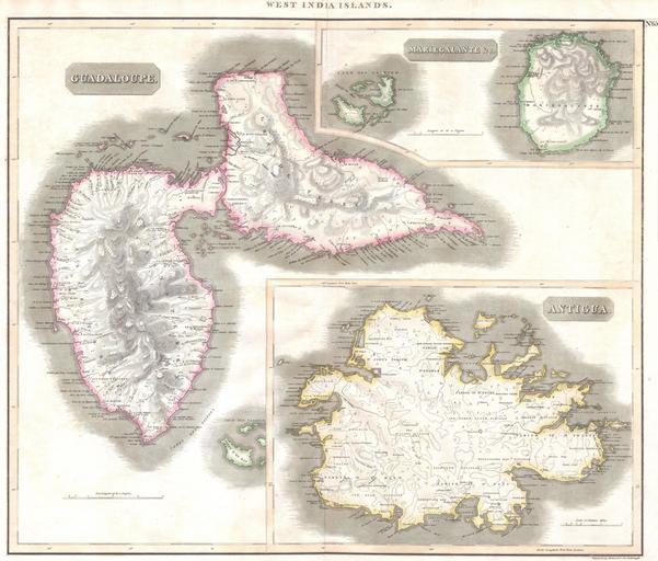 | Keywords: 1815 Thomson Map of Guadaloupe, Antigua, Marie Galante ( West Indies ) - Geographicus - Guadaloupe-t-15.jpg A fine hand colored 1815 map of the West India islands of Antigua Guadeloupe and Marie Galante Depicts the islands in considerable detail with attention to rivers topography towns and villages and major port cities Issued as chart number 65 in the 1814-1815 printing of John Thomson ™s New General Atlas Engraved by James Kirkwood of Edinburgh Scotland fr Carte couleur finement dessinĂ©e Ă la main en 1815 des Ă®les antillaises de la Guadeloupe de Marie-Galante et d'Antigua Elle dĂ©crit ces Ă®les de façon très dĂ©taillĂ©e incluant les rivières et la topographie des villes villages et villes portuaires Carte parue sous le numĂ©ro 65 dans l'Ă©dition 1814-1815 de John Thomson ™s New General Atlas Gravure par James Kirkwood d'Édinbourg Écosse 1815 Size in 23 25 20 25 object history credit line accession number Guadaloupe-t-15 Geographicus-source PD-old-100 Old maps of Guadeloupe Old maps of Antigua and Barbuda 1815 maps Maps of Marie-Galante Maps in English |
