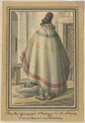 Keywords: Бойко зі Сколе 1836.jpg uk Бойко зі Сколе 1836 Mężczyzna w ujęciu od tyłu w czarnym celenderze i pasiastej narzucie z workiem orzechów stojący przed drzwiami budynku Boyko Góral od Skolego Cyrk Stryis / z orzechami we Lwowie 2016-04-21 http //www europeana eu/portal/record/2058635/_pau_oai_pauart_pl_BGR_RT_007_074 html Kielisiński Kajetan Wincenty other versions PD-old-70-1923 Ukrainian costume collection by Kajetan Kielisiński |