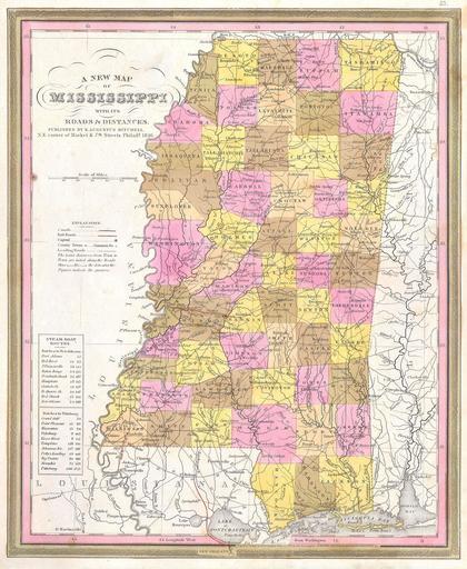 | Keywords: 1846 Burroughs - Mitchell Map of Mississippi - Geographicus - MS-m-1846.jpg This scarce hand colored map is a lithographic engraving of Mississippi dating to 1846 by the legendary American Mapmaker S A Mitchell the elder This is a rare transitional map produced by the mysterious engraver H N Burroughs whose work for the Mitchell firm appears in 1846 between that of H S Tanner and Mitchell himself Ristow notes Nothing is known about Burroughs but he was undoubtedly an employee or associate of Mitchell His fine and detailed work appears only in the hard to find 1846 edition of the Mitchell ™s Atlas and evinces a more delicate hand than later editions Dated and copyrighted 1846 1846 Size in 14 5 11 5 object history credit line accession number MS-m-1846 Geographicus-source PD-old-100 Maps by Samuel Augustus Mitchell Old maps of Mississippi 1846 maps |
