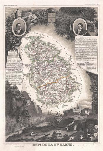 Keywords: 1852 Levasseur Map of the Department De La Haute Marne, France (Champagne Wine Region) - Geographicus - HauteMarne-levasseur-1852.jpg This is a fascinating 1852 map of the French department of Haute Marne France This department is part of the Champagne region where the world-famous sparkling wine of the same name is produced This area is known for a variety of wines from the Coiffy-le-Haut vineyard champagne from Rizaucourt-Argentolles and the local favorite 'Choue' beer It is also famous for its production of Langres a salty cheese with a pronounced odor The map proper is surrounded by elaborate decorative engravings designed to illustrate both the natural beauty and trade richness of the land There is a short textual history of the regions depicted on both the left and right sides of the map Published by V Levasseur in the 1852 edition of his Atlas National de la France Illustree 1852 undated Size in 11 5 17 object history credit line accession number HauteMarne-levasseur-1852 Levassuer V <i>Atlas National Illustre des 86 Departements et des Possessions de La France Divise par Arrondissements Cantons et Communea avec La Trace de Toutes Les Routes Chemins de fer et Canaux </i> 1852 edition Geographicus-source PD-old-100 1852 maps France Old maps of Haute-Marne Images extracted from Encyclopédie France Victor Levasseur - Maps of France France |