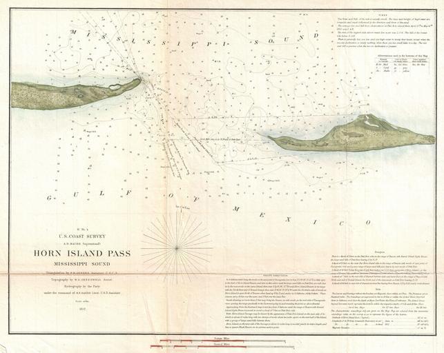 Keywords: 1852 U.S. Coast Survey Map of Horn Island Pass, Mississippi Sound - Geographicus - HornIslandPass-uscs-1852.jpg A very nice example of the U S Coast Survey ™s 1852 chart or map of the Horn Island Pass Depicts the East End of Horn Island and the West End of Petit Bois Island with Horn Island Pass running between the two Horn Island Pass offers an exceptionally valuable entrance to the Mississippi Sound and access to Pascagoula Bay and Harbor Since this map was made a number of violent storms and other natural disasters have reshaped the topography of this region There are countless depth soundings throughout with the best channel clearly marked just to the east of Horn Island Detailed sailing instruction and notes on undersea dangers times and bearings in the lower right and upper right quadrants Prepared under the supervision of A D Bache by H Gerdes the Coast Survey ™s resident Gulf expert W E Greenwell and B F Sands 1852 dated Size in 16 6 12 5 object history credit line accession number HornIslandPass-uscs-1852 <i>Report of the Superintendant of the United States Coast Survey </i> Washington 1852 Geographicus-source PD-art United States Coast Survey maps Old maps of Mississippi 1852 U S Coast survey Islands of Mississippi |