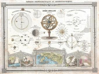 Keywords: 1852 Vuillemin Astronomical and Cosmographical Chart - Geographicus - Cosmographique-vuillemin-1852.jpg An uncommon and attractive 1852 Astronomical and Cosmographical chart by M Vuillemin Includes numerous charts showing the Ptolemaic planetary system the modern planetary system the Lunar system the seasons directions an armillary sphere etc Along the bottom of the map several classical style decorative frames depict a storm at sea an avalanche an waterfall and an volcano Features a beautiful frame style border Prepared by M Vuillemin and J G Barbie du Bocage for publication as plate no 1 in Maison Basset ™s 1852 edition of the Atlas Illustre 1852 undated Size in 12 5 9 5 object history credit line accession number Cosmographique-vuillemin-1852 Maison Basset <i>Atlas Illustre</i> 1852 issue Geographicus-source PD-art 1852 paintings Old astronomical prints Compass roses on maps Armillary spheres Astronomical diagrams Astronomy sketches Celestial globes Alexandre Vuillemin |