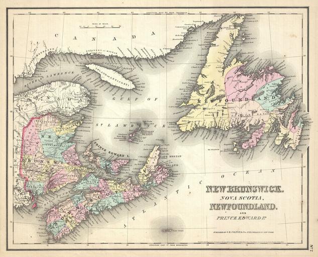 | Keywords: 1857 Colton Map of New Brunswick and Newfoundland, Canada - Geographicus - Newfoundland-colton-1857.jpg This is the uncommon 1857 issue of J H Colton ™s map of Canada's Maritime Provinces including New Brunswick Nova Scotia Newfoundland and Prince Edward Island Covers all of New Brunswick Nova Scotia Newfoundland and Prince Edward along with a portion of Canada in the north and the Island of Anticosti Divided and color coded according to province and country Shows major roadways and railroads as well as geological features such as lakes and rivers Like most Colton maps this map is dated 1855 but most likely was issued in the 1857 issue of Colton ™s Atlas This was the only issue of Colton's Atlas that appeared without his trademark grillwork border Dated and copyrighted Entered according to the Act of Congress in the Year of 1855 by J H Colton Co in the Clerk ™s Office of the District Court of the United States for the Southern District of New York Published from Colton ™s 172 William Street Office in New York City NY 1858 dated 1855 Size in 16 5 14 object history credit line accession number Newfoundland-colton-1857 Colton G W <i>Colton's Atlas of the World Illustrating Physical and Political Geography</i> c 1857 edition Geographicus-source PD-old-100 Maps by Joseph Hutchins Colton Old maps of the Gulf of Saint Lawrence Old maps of New Brunswick Old maps of Nova Scotia Old maps of Newfoundland Old maps of Prince Edward Island 1858 maps of Canada |