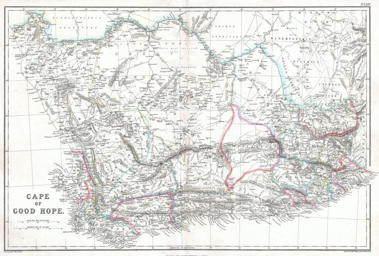| Keywords: 1860 Blackie Map of the Cape of Good Hope - Geographicus - CapeofGoodHope-blackie-1860.jpg An extremely attractive c 1860 of South Africa and the Cape of Good Hope Covers much of the southern top of Africa from S Helena Bay and the Cape of Good Hope to Kaffir Land in the east This highly detailed map is most likely based on Edward Weller ™s map of the same region prepared for the Weekly Dispatch Atlas Highly detailed and full of interesting notations such as Parts most infested with Wild Bushmen Color coded according to region Published as plate no LXIV in Blackie ™s Imperial Atlas 1860 undated Size in 21 14 object history credit line accession number CapeofGoodHope-blackie-1860 Blackie W G <i>The Imperial Atlas of Modern Geography; an extensive Series of Maps etc </i> 1860 Geographicus-source PD-art Old maps of South Africa 1860 maps |