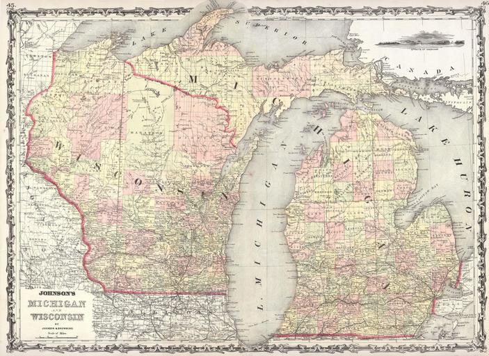 | View Original: | 1862_Johnson_Map_of_Wisconsin_and_Michigan_-_Geographicus_-_MIWI-j-62.jpg (3500x2550) | |||