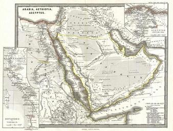 | Keywords: 1865 Spruner Map of Arabia and Egypt in Antiquity - Geographicus - Arabia-spruner-1865.jpg A particularly interesting historic map this is Karl von Spruner ™s 1865 rendering of Arabia Aethiopia Ethiopia and Egypt Aegyptus in antiquity Centered on the Red Sea or Mare Rubrum this map covers the entirety of the Arabian Peninsula the Persian Gulf and the Nile Valley as far south as Lake Tana Pseuba the source of the Blue Nile Like most of Spruner ™s work this map overlays ancient political geographies on relatively contemporary physical geographies thus identifying the sites of forgotten towns and villages the movements of armies and the disposition of lands in the region This particular example includes both ancient Latin and more contemporary Arabic names transliterated of course for many important regions and sites Additionally two inset maps are offered In the lower left hand quadrant a map labeled Heptanomis et Thebais focuses on the course of the Nile from Heptatnomis near Fayum south to just past modern day Aswan covering in the process many of the ancient Egyptian cities now submerged under the waters of Lake Nasser Another inset in the upper right quadrant focuses on the fertile Nile Delta forming an inverted triangle between Alexandria Memphis and Casluch As a whole the map labels important cities rivers mountain ranges and other minor topographical detail Territories and countries outlined in color The whole is rendered in finely engraved detail exhibiting the fine craftsmanship for which the Perthes firm is known 1865 undated Size in 16 13 object history credit line accession number Arabia-spruner-1865 Spruner Karl von <i>Spruner-Menke Atlas Antiquus </i> Gotha Justus Perthes 1865 Geographicus-source PD-old-100 Karl Spruner von Merz Old maps of the Middle East 1865 maps |