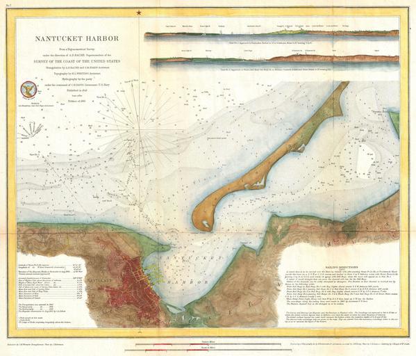 | Keywords: 1866 U.S. Coast Survey Map of Nantucket Harbor, Nantucket - Geographicus - NantucketHarbor-uscs-1866.jpg An extraordinary 1866 U S Coast Survey nautical chart or map of Nantucket Harbor Massachusetts Covers Nantucket Harbor on the northern part of Nantucket roughly from Whale's Rock to Pocomo Head Includes the town of Nantucket as well as Coatue Beach This is one of the rarest and most desirable charts issued by the U S Coast Survey Offers superb nautical and inland detail Includes countless depth soundings and inland detail to the level of individual streets wharves and buildings Identifies the Bug Lights Range Light Coatne Point Brant Pint Pumny's Point and Shemo Point among others Also identifies various undersea dangers such as flats shoals and rocks There are two profile views in the upper right quadrant Both views detail Nantucket Harbor from various directions and distances Notes on the construction of this chart appear in the lower left hand quadrant Sailing directions can be found in the lower right quadrant The topography was executed H L Whiting The Triangulation was accomplished by A D Bache and C M Eakin The Hydrography was completed by a party under the command of C H Davis This chart was prepared under the supervision of A D Bache one of the most influential Superintendents in the history of the Coast Survey Issued in the 1867 supplement to the 1865 Superintendent's Report 1866 dated Size in 15 15 object history credit line accession number NantucketHarbor-uscs-1866 <i>Report of the Superintendant of the United States Coast Survey </i> Washington 1867 Supplement to the 1865 edition Geographicus-source PD-art United States Coast Survey maps Maps of Massachusetts Old maps of Nantucket |