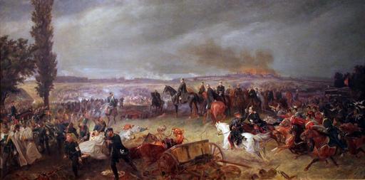 Keywords: 1868 Bleibtreu Schlacht bei Koeniggraetz anagoria.JPG Georg Bleibtreu 1828 “1892 attributed to de Der preußische König Wilhelm I Bismarck und General Moltke beobachten die größte Umfassungsschlacht der Kriegsgeschichte Am 3 Juli 1866 standen sich etwa 180 000 Österreicher und 200 000 Preußen gegenüber 1 500 Geschütze kamen zum Einsatz Mit dem Sieg der preußischen Armee eröffnete sich der Weg für eine Reichseinigung unter preußischer Führung “ ohne Österreich en The Prussian King Wilhelm I Bismarck and Moltke General observe the largest encirclement in military history On July 3 1866 approximately 180 000 Austrians faced 200 000 Prussians 1 500 guns were used With the victory of the Prussian army the way for a unification opened under Prussian leadership - without Austria 1869 oil canvas cm 100 200 institution Deutsches Historisches Museum accession number Gm 94/26 http //www dhm de/datenbank/dhm php seite 5 fld_0 K1000785 Deutsches Historisches Museum Berlin object history credit line exhibition history photo own Anagoria 2012-11-11 1892 DEFAULTSORT Bleibtreu Georg; Die Schlacht von Königgrätz am 3 Juli 1866; Deutsches Historisches Museum Battle of Königgrätz by Georg Bleibtreu Paintings in the Deutsches Historisches Museum Deutsches Historisches Museum - 19th century 1869 paintings Files by User anagoria |