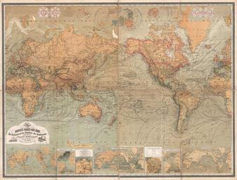 Keywords: 1870 Baur and Bromme Map of the World on Mercator Projection - Geographicus - NeuesteKartederErde-baur-1870.jpg Artwork en A vastly complex and enormously proportioned c 1870 German map of the world by C F Baur and Traugott Bromme Printed in c 1870 in a multi-toned lithographic process this extraordinary map presents the world on a Mercator Projections Designed with a educational purposes in mind Baur manages to incorporate a staggering wealth of informative detail into ever corner of this map The world is depicted according to the political conventions of the late 19th century While most of the world had been explored by the late 19th century this map does offer some interesting speculative land masses in the Arctic including Gillis Land named after a c 1707 whaler who supposedly spotted it and a mysterious land mass to the northwest of the Behring Strait The Canadian Arctic is remarkable well mapped though the whole region is shows to be locked down in glacial ice In contrast Antarctic exploration was still in its infancy though parts of the Antarctic coast line are noted to the south of Australia and off the coast of Tierra del Fuego Throughout there is an attempt to map currents and wind patterns Various explorers routes including Cook Biscoe Tasman Wilkes Vancouver the Resolution Wallis Boupet Diego Alvarez Bligh Boulton and many others This also identifies the Saragasso Sea and another similar vortex in the Pacific The border regions of the map are occupied by a series of smaller maps and charts including polar projections an isothermal chart a winds chart an inset of Panama and Suez two weather charts and a magnetic variation chart The title cartouche appearing in the lower left quadrant shows a shop and a train as well as curious logo that seems to embraced the realms of navigation and science 1870 undated Size in 49 36 object history credit line accession number NeuesteKartederErde-baur-1870 Geographicus-source PD-art 1870 maps 1870s maps of the world Old maps with Mercator projection Maps in German Old weather and climate maps Global maps centered 180E Paris prime |