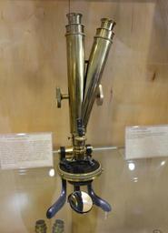 | Keywords: 1870 circa, binocular compound microscope, Henry Crouch, England - Golub Collection of Antique Microscopes - DSC04870.JPG en Microscope in the Golub Collection of Antique Microscopes exhibited at the University of California Berkeley - Berkeley California USA This microscope is old enough so that its design is in the public domain Photography was permitted without restriction 2013-11-15 14 13 07 own Daderot other versions cc-zero Microscopes in the Golub Collection of Antique Microscopes Uploaded with UploadWizard |