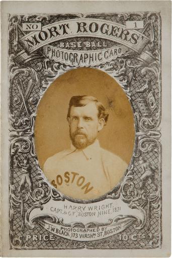 | Keywords: 1872 Harry Wright card.jpg 1872 Mort Rogers Boston Red Stockings vs Baltimore Canaries Photographic Scorecard 1 http //sports ha com/itm/baseball/1872-mort-rogers-boston-red-stockings-vs-baltimore-canaries-photographic-scorecard-1-picturing-harry-wright/a/7155-80046 s Heritage Auctions 1872 Mort Rogers scorecard PD-old Harry Wright 1872 in sports |
