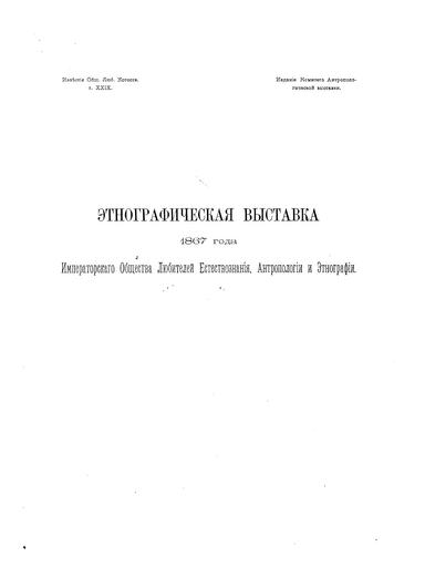 Keywords: ргб 1878 1867 этнографическая выставка этнографическаявыставка этнография russian state library russianstatelibrary rsl ethnography exhibition moscow blackandwhite monochrome text black and white Этнографическая выставка 1867 года Общества любителей естествознания, антропологии и этнографии, состоящего при Имп. Московском университете : Ист. очерк устройства Выст., описание и перечень предметов, бывших на Выст. и протоколы заседаний Ком. по устройству Выст. : Изд. Ком. Антропол. выставки. - Москва : Тип. М.Н. Лаврова и К°, 1878. - [4], II, 93 с., 19 л. ил.; 32. - (Известия Общества любителей естествознания, антропологии и этнографии; Т. 29 [вып. 1]). Источник: РГБ - dlib.rsl.ru/rsl01003000000/rsl01003608000/rsl01003608280/... Этнографическая выставка 1867 года Общества любителей естествознания, антропологии и этнографии, состоящего при Имп. Московском университете : Ист. очерк устройства Выст., описание и перечень предметов, бывших на Выст. и протоколы заседаний Ком. по устройству Выст. : Изд. Ком. Антропол. выставки. - Москва : Тип. М.Н. Лаврова и К°, 1878. - [4], II, 93 с., 19 л. ил.; 32. - (Известия Общества любителей естествознания, антропологии и этнографии; Т. 29 [вып. 1]). Источник: РГБ - dlib.rsl.ru/rsl01003000000/rsl01003608000/rsl01003608280/...