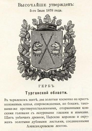 | Keywords: Тургайская обл 1878 из Винклера.jpg Official Russian Empire coats of arms Turgai Oblast Ге б Российской Импе ии Ту гайской области с официальным описанием в Ге бовнике Винкле а П П фон-Винкле Ге бы го одов губе ний областей и посадов Российской Импе ии внесенные в Полное Соб ание законов с 1649 по 1900 год Дозволено цензу ою С -Пете бу г 20 Июля 1899 года Издание книгото говца Ив Ив Иванова С -Пете бу г Типог афия И Комелова П яжка д 3 1899 \ Scanned by Vizu 1878 / 1899 published П П фон Винкле \ Pavel von Vinkler PD-old PD-RusEmpire PD-RU-exempt <references/> Gerbovnik Vinklera - Governorate Oblast CoAs Turgai Oblast |