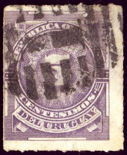 Keywords: 1887 Uruguay 5c Mi58.jpg en Stamp of Uruguay 5 centesimos issue of December 1 1886 engraved rouletted Postmark 1 in oval bars fr 5 c violet Yvert N°61 de Violett 5 C Michel N°58 2014-05-04 19 30 05 own Jacquesverlaeken Scan of cancelled stamp engraved by the American Bank Note Co cc-zero Rouletted stamps Engraved stamps Uploaded with UploadWizard Purple stamps Stamps of Uruguay 1886 Postmarks of Uruguay |