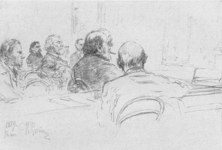 Keywords: 1889Врус.лит.общ.Фоф.Полонск.Кони.jpg ru И Е Репин В усском лите ату ном обществе Слева - К Фофанов в цент е - Я П Полонский спиной к художнику А Ф Кони Рисунок 1889 год Р Б Цибульская Репин Илья Ефимович И Е Репин 1889 Genre paintings by Ilya Yefimovich Repin PD-old
