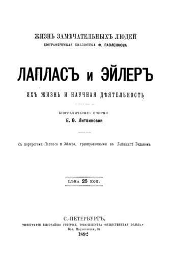 | Keywords: ЖЗЛ 1892.jpg ru Титульный лист книги из се ии ЖЗЛ биог афической библиотеки Ф Ф Павленкова Литвинова Е Ф Лаплас и Эйле их жизнь и научная деятельность Собственная абота 2010-12-29 Cc-zero Books from Russia 1892 Leonhard Euler Pierre-Simon Laplace |