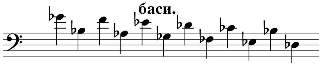 Keywords: Зоря. Ноти. 1894. 10. 232.2.svg uk Ілюст ація до статті иколи Лисенка а одні музичні ст ументи на Вк аїнї Цимбали Баси 1894-05-27 Зо я часопис 10 с 232-233 икола Лисенко other versions Часопис Зо я 1894 10 pdf Hidden background ECECEC; white;color black border 1px grey solid; padding 2px Created by MuseScore <nowiki> < xml version 1 0 encoding UTF-8 > <museScore version 2 06 > <programVersion>2 0 2</programVersion> <programRevision>f51dc11</programRevision> <Score> <LayerTag id 0 tag default ></LayerTag> <currentLayer>0</currentLayer> <Synthesizer> </Synthesizer> <Division>480</Division> <Style> <staffUpperBorder>6</staffUpperBorder> <page-layout> <page-height>119 055</page-height> <page-width>566 929</page-width> <page-margins type even > <left-margin>5 66929</left-margin> <right-margin>5 66929</right-margin> <top-margin>56 6929</top-margin> <bottom-margin>113 386</bottom-margin> </page-margins> <page-margins type odd > <left-margin>5 66929</left-margin> <right-margin>5 66929</right-margin> <top-margin>0</top-margin> <bottom-margin>0</bottom-margin> </page-margins> </page-layout> <Spatium>1 764</Spatium> </Style> <showInvisible>1</showInvisible> <showUnprintable>1</showUnprintable> <showFrames>1</showFrames> <showMargins>0</showMargins> <metaTag name arranger ></metaTag> <metaTag name composer ></metaTag> <metaTag name copyright ></metaTag> <metaTag name creationDate >2015-11-23</metaTag> <metaTag name lyricist ></metaTag> <metaTag name movementNumber ></metaTag> <metaTag name movementTitle ></metaTag> <metaTag name platform >Microsoft Windows</metaTag> <metaTag name poet ></metaTag> <metaTag name source ></metaTag> <metaTag name translator ></metaTag> <metaTag name workNumber ></metaTag> <metaTag name workTitle ></metaTag> <PageList> <Page> <System> </System> </Page> </PageList> <Part> <Staff id 1 > <StaffType group pitched > <name>stdNormal</name> </StaffType> <bracket type -1 span 0 /> </Staff> <trackName>Lute</trackName> <Instrument> <longName>Lute</longName> <shortName>Lt </shortName> <trackName>Lute</trackName> <minPitchP>33</minPitchP> <maxPitchP>79</maxPitchP> <minPitchA>33</minPitchA> <maxPitchA>79</maxPitchA> <instrumentId>pluck lute</instrumentId> <StringData> <frets>13</frets> <string>43</string> <string>48</string> <string>53</string> <string>57</string> <string>62</string> <string>67</string> </StringData> <Articulation> <velocity>100</velocity> <gateTime>100</gateTime> </Articulation> <Articulation name staccatissimo > <velocity>100</velocity> <gateTime>33</gateTime> </Articulation> <Articulation name staccato > <velocity>100</velocity> <gateTime>50</gateTime> </Articulation> <Articulation name portato > <velocity>100</velocity> <gateTime>67</gateTime> </Articulation> <Articulation name tenuto > <velocity>100</velocity> <gateTime>100</gateTime> </Articulation> <Articulation name marcato > <velocity>120</velocity> <gateTime>67</gateTime> </Articulation> <Articulation name sforzato > <velocity>120</velocity> <gateTime>100</gateTime> </Articulation> <Channel> <program value 25 /> <synti>Fluid</synti> </Channel> </Instrument> </Part> <Staff id 1 > <Measure number 1 len 12/4 > <Clef> <concertClefType>F</concertClefType> <transposingClefType>F</transposingClefType> </Clef> <TimeSig> <visible>0</visible> <sigN>6</sigN> <sigD>4</sigD> <textN>12</textN> <textD>4</textD> <Groups> <Node pos 4 action 512 /> <Node pos 8 action 512 /> <Node pos 12 action 512 /> <Node pos 16 action 512 /> <Node pos 20 action 512 /> <Node pos 24 action 273 /> <Node pos 28 action 512 /> <Node pos 32 action 512 /> <Node pos 36 action 512 /> <Node pos 40 action 512 /> <Node pos 44 action 512 /> </Groups> <showCourtesySig>1</showCourtesySig> </TimeSig> <StaffText> <pos x 14 3991 y -6 09987 /> <style>System</style> <size>14</size> <bold>1</bold> <text>баси </text> </StaffText> <Chord> <durationType>quarter</durationType> <Note> <Accidental> <subtype>flat</subtype> </Accidental> <pitch>66</pitch> <tpc>8</tpc> </Note> </Chord> <Chord> <durationType>quarter</durationType> <Note> <Accidental> <subtype>flat</subtype> </Accidental> <pitch>58</pitch> <tpc>12</tpc> </Note> </Chord> <Chord> <durationType>quarter</durationType> <Note> <pitch>65</pitch> <tpc>13</tpc> </Note> </Chord> <Chord> <durationType>quarter</durationType> <Note> <Accidental> <subtype>flat</subtype> </Accidental> <pitch>56</pitch> <tpc>10</tpc> </Note> </Chord> <Chord> <durationType>quarter</durationType> <Note> <Accidental> <subtype>flat</subtype> </Accidental> <pitch>63</pitch> <tpc>11</tpc> </Note> </Chord> <Chord> <durationType>quarter</durationType> <Note> <Accidental> <subtype>flat</subtype> </Accidental> <pitch>54</pitch> <tpc>8</tpc> </Note> </Chord> <Chord> <durationType>quarter</durationType> <Note> <Accidental> <subtype>flat</subtype> </Accidental> <pitch>61</pitch> <tpc>9</tpc> </Note> </Chord> <Chord> <durationType>quarter</durationType> <Note> <Accidental> <subtype>flat</subtype> </Accidental> <pitch>52</pitch> <tpc>6</tpc> </Note> </Chord> <Chord> <durationType>quarter</durationType> <Note> <Accidental> <subtype>flat</subtype> </Accidental> <pitch>59</pitch> <tpc>7</tpc> </Note> </Chord> <Chord> <durationType>quarter</durationType> <Note> <Accidental> <subtype>flat</subtype> </Accidental> <pitch>51</pitch> <tpc>11</tpc> </Note> </Chord> <Chord> <durationType>quarter</durationType> <Note> <Accidental> <role>1</role> <subtype>flat</subtype> </Accidental> <pitch>58</pitch> <tpc>12</tpc> </Note> </Chord> <Chord> <durationType>quarter</durationType> <Note> <Accidental> <subtype>flat</subtype> </Accidental> <pitch>49</pitch> <tpc>9</tpc> </Note> </Chord> <BarLine> <subtype>end</subtype> <span>1</span> <visible>0</visible> </BarLine> </Measure> </Staff> </Score> </museScore> </nowiki> end PD-old-70-1923 Uploaded with UploadWizard Sample sheet music for Зо я Sheet music for hammered dulcimers