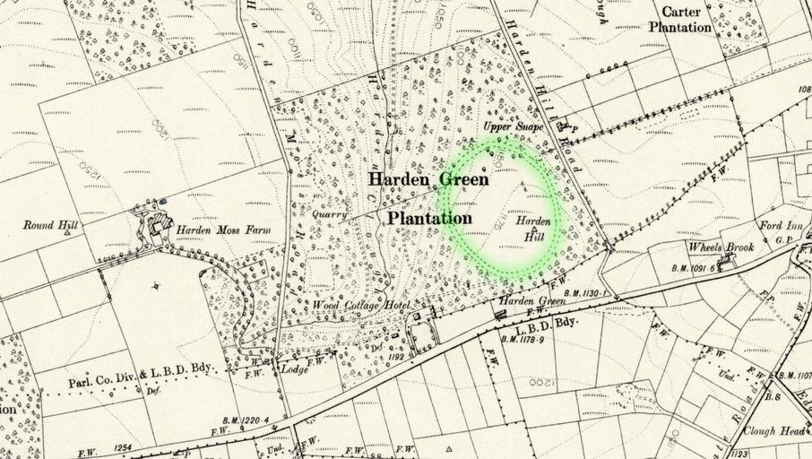 Keywords: maps 1894 harden moss hardenmoss holmfirth harden moss racecourse hardenmossracecourse 1894 Ordnance Survey map showing the short-lived Harden Moss Racecourse, situated above Meltham and Holmfirth on the Greenfield Road. Solicitor Frederick Robert Jones (1814-1896) had hoped to build a racecourse next to his "model farm" at Harden Moss and this resulted in the clearing of an oval of land on Harden Hill in the 1860/1870s. However, for unknown reasons, the project was never completed, despite Jones owning racehorses himself. In the early 1890s, Robert Taylor of the nearby Wood Cottage Hotel completed the laying out of the 900 yard course as well as erecting a wooden grandstand on the western side of the track. Unfortunately, as the course was around a hill, spectators weren't able to see the horses on the far side! The inaugural trotting races took place during the 1895 Honley Feast, with a reported 6,000 to 8,000 turning up. Taylor had been successful in obtaining a temporary licence to sell alcohol at the event, but this was then withdrawn after a police constable was assaulted by a drunken race-goer. Subsequent licence applications were then blocked by Superintendent Pickard. The two other documented events attracted only around 500 spectators and it appears racing was abandoned after only a couple of years. The track later became incorporated into the Harden Moss Fell Race, with the 1940 race including two laps of the track. Despite the track long being disused, it remains faintly visible on the Google Maps satellite view of the fields behind the Huntsman Inn. 1894 Ordnance Survey map showing the short-lived Harden Moss Racecourse, situated above Meltham and Holmfirth on the Greenfield Road. Solicitor Frederick Robert Jones (1814-1896) had hoped to build a racecourse next to his "model farm" at Harden Moss and this resulted in the clearing of an oval of land on Harden Hill in the 1860/1870s. However, for unknown reasons, the project was never completed, despite Jones owning racehorses himself. In the early 1890s, Robert Taylor of the nearby Wood Cottage Hotel completed the laying out of the 900 yard course as well as erecting a wooden grandstand on the western side of the track. Unfortunately, as the course was around a hill, spectators weren't able to see the horses on the far side! The inaugural trotting races took place during the 1895 Honley Feast, with a reported 6,000 to 8,000 turning up. Taylor had been successful in obtaining a temporary licence to sell alcohol at the event, but this was then withdrawn after a police constable was assaulted by a drunken race-goer. Subsequent licence applications were then blocked by Superintendent Pickard. The two other documented events attracted only around 500 spectators and it appears racing was abandoned after only a couple of years. The track later became incorporated into the Harden Moss Fell Race, with the 1940 race including two laps of the track. Despite the track long being disused, it remains faintly visible on the Google Maps satellite view of the fields behind the Huntsman Inn. |