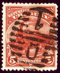 Keywords: 1895 Uruguay 5c Mi102.jpg en Stamp of Uruguay 5 centesimos issue 1895 engraved Postmark Q-1 in oval bars fr 10 c rouge Yvert N°105 de Zinnober 5 C Michel N°102 2014-05-04 19 30 05 own Jacquesverlaeken Scan of cancelled stamp engraved by Waterlow Sons cc-zero Engraved stamps Uploaded with UploadWizard Stamps of Uruguay 1895 Postmarks of Uruguay |