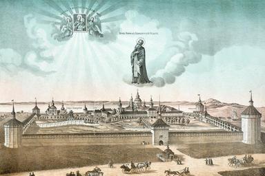 Keywords: ЛитографияКБМ1897.jpg ru Цент альная часть цветной х омолитог афии «Вид пе воклассного Ки илло-Белозе ского монасты я в память пятисотлетия основания его» 1897г В цент альной части листа - монасты ский ансамбль на бе егу Сиве ского озе а вве ху - об аз п еподобного Ки илла Белозе ского с иконой Бого одицы Одигит ии Внизу - надпись «От Санкт-Пете бу гского духовного цензу ного комитета печатать дозволяется Санкт-Пете бу г 18-го ап еля 1897 года» Разме х омолитог афии 32 5x43 5 см Х анится в Ки илло-Белозе ском музее 1897 http //www kirmuseum ru/info/collection/detail php ID 2273 author PD-Art Uploaded with UploadWizard Kirillo-Belozersky Monastery Museum of Kirillo-Belozersky Monastery