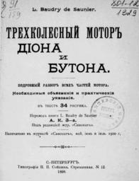 Keywords: saunier 1899 translation rsl russian state library russianstatelibrary russian empire russianempire history of automobile historyofautomobile дион-бутон дионбутон dion-bouton dionbouton трицикл three-wheeler threewheeler tricycle издательство самокат издательствосамокат перевод blackandwhite monochrome text writing document black and white Бодри де Сонье, Луи (1865-). ... Трехколесный мотор Диона и Бутона : Подроб. разбор всех частей мотора : Необходимые объясн. и практ. указания : В тексте 34 рис. / L. Baudry de Saunier; Пер. кн. L. Baudry de Saunier А.К. З[верев]а; Под ред. журн. "Самокат". - Санкт-Петербург : тип. П.П. Сойкина, 1899. - 70 с. : ил., черт.; 15. Напеч. в журн. "Самокат", май, июнь и июль 1900 г. На 1-й странице обл. объявл. Акц. о-ва постройки и эксплоатации экипажей и автомоб. Фрезе и К° Хранение: E 91/159; Хранение: 801-12/1329; dlib.rsl.ru/rsl01003000000/rsl01003644000/rsl01003644659/... Бодри де Сонье, Луи (1865-). ... Трехколесный мотор Диона и Бутона : Подроб. разбор всех частей мотора : Необходимые объясн. и практ. указания : В тексте 34 рис. / L. Baudry de Saunier; Пер. кн. L. Baudry de Saunier А.К. З[верев]а; Под ред. журн. "Самокат". - Санкт-Петербург : тип. П.П. Сойкина, 1899. - 70 с. : ил., черт.; 15. Напеч. в журн. "Самокат", май, июнь и июль 1900 г. На 1-й странице обл. объявл. Акц. о-ва постройки и эксплоатации экипажей и автомоб. Фрезе и К° Хранение: E 91/159; Хранение: 801-12/1329; dlib.rsl.ru/rsl01003000000/rsl01003644000/rsl01003644659/...