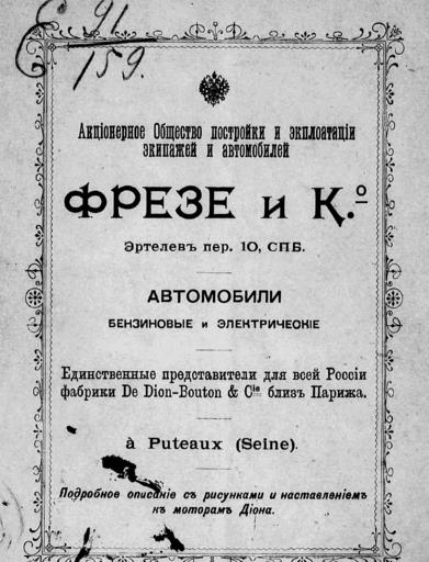 | Keywords: saunier 1899 translation rsl russian state library russianstatelibrary russian empire russianempire history of automobile historyofautomobile дион-бутон дионбутон dion-bouton dionbouton трицикл three-wheeler threewheeler tricycle издательство самокат издательствосамокат перевод blackandwhite monochrome text writing outdoor photo border black and white Бодри де Сонье, Луи (1865-). ... Трехколесный мотор Диона и Бутона : Подроб. разбор всех частей мотора : Необходимые объясн. и практ. указания : В тексте 34 рис. / L. Baudry de Saunier; Пер. кн. L. Baudry de Saunier А.К. З[верев]а; Под ред. журн. "Самокат". - Санкт-Петербург : тип. П.П. Сойкина, 1899. - 70 с. : ил., черт.; 15. Напеч. в журн. "Самокат", май, июнь и июль 1900 г. На 1-й странице обл. объявл. Акц. о-ва постройки и эксплоатации экипажей и автомоб. Фрезе и К° Хранение: E 91/159; Хранение: 801-12/1329; dlib.rsl.ru/rsl01003000000/rsl01003644000/rsl01003644659/... Бодри де Сонье, Луи (1865-). ... Трехколесный мотор Диона и Бутона : Подроб. разбор всех частей мотора : Необходимые объясн. и практ. указания : В тексте 34 рис. / L. Baudry de Saunier; Пер. кн. L. Baudry de Saunier А.К. З[верев]а; Под ред. журн. "Самокат". - Санкт-Петербург : тип. П.П. Сойкина, 1899. - 70 с. : ил., черт.; 15. Напеч. в журн. "Самокат", май, июнь и июль 1900 г. На 1-й странице обл. объявл. Акц. о-ва постройки и эксплоатации экипажей и автомоб. Фрезе и К° Хранение: E 91/159; Хранение: 801-12/1329; dlib.rsl.ru/rsl01003000000/rsl01003644000/rsl01003644659/... |