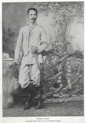 | Keywords: 1899 general garcia.jpg en Photo of General Garcia a prominent officer of the army of the Philippine Republic Our Islands and Their People Jose De Olivares 1899 PD-old People of the Philippines Portraits of standing men Black and white photographs of people |