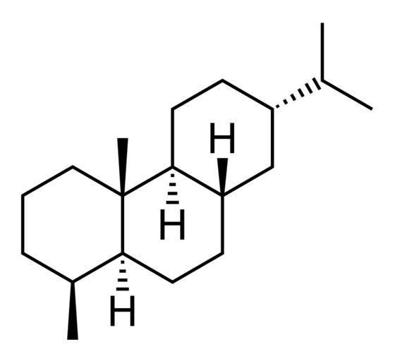 | Keywords: 18-norabietane.svg Skeletal formula of 18-norabietane 7-isopropyl-1 4a-dimethyl-dodecahydro-1H-phenanthrene the main constituent of fichtelite Created using http //www acdlabs com/download/chemsk html ACD/ChemSketch 12 0 and Inkscape Optimized with vim Own 2011-07-13 Fvasconcellos Diterpenes |