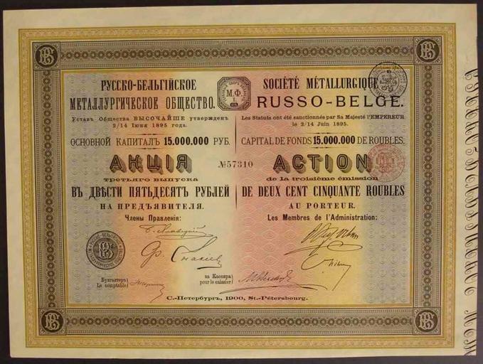 | Keywords: 1900. Акция РБМО.jpg Акция Русско-Бельгийского металлу гического общества http //enr dn ua/ p 3500 1900 Русско-Бельгийское металлу гическое общество PD-RusEmpire Stock certificates of Russian-Belgian metallurgical society Files uploaded by Andrew Butko from various sources |