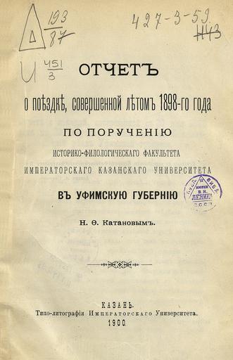 Keywords: катанов н.ф. катановнф уфимская губерния уфимскаягуберния татары отчёт 1898 1900 ргб электронный ресурс ргб электронныйресурсргб katanov rsl russian state library russianstatelibrary tatars тюрки этнография тюркская лингвистика тюркскаялингвистика ethnography turkic language turkiclanguage turks text document writing Катанов, Николай Федорович (1862-1922). Отчет о поездке, совершенной летом 1898-го года, по поручению Историко-филологического факультета Императорского Казанского университета в Уфимскую губернию Н.Ф. Катановым. - Казань : типо-лит. Имп. ун-та, 1900. - 121 с.; 24. Хранение: A 263/641; Хранение: U 451/3; Хранение: W 524/1080; Электронный ресурс dlib.rsl.ru/rsl01003000000/rsl01003556000/rsl01003556380/... Катанов, Николай Федорович (1862-1922). Отчет о поездке, совершенной летом 1898-го года, по поручению Историко-филологического факультета Императорского Казанского университета в Уфимскую губернию Н.Ф. Катановым. - Казань : типо-лит. Имп. ун-та, 1900. - 121 с.; 24. Хранение: A 263/641; Хранение: U 451/3; Хранение: W 524/1080; Электронный ресурс dlib.rsl.ru/rsl01003000000/rsl01003556000/rsl01003556380/...