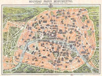 | Keywords: 1900 Garnier Pocket Map or Plan of Paris, France ( Eiffel Tower ) - Geographicus - Paris-garnier-1900.jpg  This rare c 1900 pocket map of Paris France combines the virtues of a map and a view Covers the old walled city of Paris and surrounding areas Paris proper is colored in appealing pastels and exhibits more map-like qualities in the layout of the streets trains and bridges Important buildings and monuments are shown in profile These include the Eiffel Tower The Arc de Triomphe and the Opera among hundreds of others The regions outside the walled city are mostly in view format with a horizon in at top and trees buildings and bridges shown in profile An altogether marvelous decorative map and one of the first tourist maps to show the Eiffel Tower Issued with its accompanying guide bound in red linen Features 13 pages of text with guides to museums hotels shops and other advertisements Engraved by L Poulmaire printed by Dufrenoy and published in Paris by Librairie Garnier Frères 1900 undated Size in 27 21 object history credit line accession number Paris-garnier-1900 Independent Issue Geographicus-source PD-art Maps of Paris in the 20th century 20th-century maps of Paris Maps of landmarks in Paris 1900 in Paris |