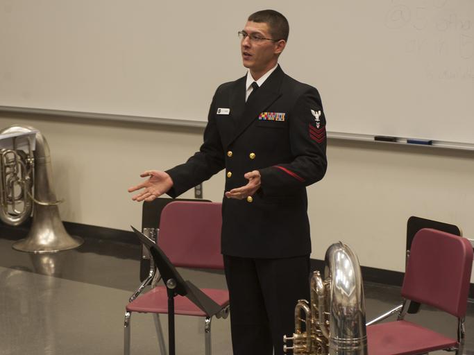 | Keywords: indoor 120219-N-ZS489-001 COMMERCE, Tx. (Feb. 19, 2014) Musicians of the U.S. Navy Band perform recitals and facilitate masterclasses for students at Texas A&M University- Commerce prior to the U.S. Navy Concert Band's performance on campus that evening. The U.S. Navy Concert Band, based in Washington and commanded by Capt. Brian O. Walden, is currently on a 24-day tour of seven states. One of the band's primary responsibilities, national tours increase awareness of the Navy in palces that don't see the Navy at work on a regular basis. (U.S. Navy photo by Musician 1st Class Adele Mayne/Released) 120219-N-ZS489-001 COMMERCE, Tx. (Feb. 19, 2014) Musicians of the U.S. Navy Band perform recitals and facilitate masterclasses for students at Texas A&M University- Commerce prior to the U.S. Navy Concert Band's performance on campus that evening. The U.S. Navy Concert Band, based in Washington and commanded by Capt. Brian O. Walden, is currently on a 24-day tour of seven states. One of the band's primary responsibilities, national tours increase awareness of the Navy in palces that don't see the Navy at work on a regular basis. (U.S. Navy photo by Musician 1st Class Adele Mayne/Released) |