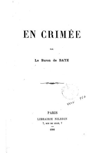 <a href="http://search.rsl.ru/ru/record/01004437359" rel="nofollow">search.rsl.ru/ru/record/01004437359</a> crimea ethnography rsl 1895 1894 крым crimée russianstatelibrary российскаягосударственнаябиблиотека ргб этнография барондебай bayejoseph 1906. Baye, En Crimee. RSL Страница 01 (26275613246).jpg En Crimee / par le baron de Baye - Librairie Nilsson 1906 - 55 с http //search rsl ru/ru/record/01004437359 search rsl ru/ru/record/01004437359 https //www flickr com/photos/112083457 N03/26275613246/ 1906 Baye En Crimee RSL_Ст аница_01 2016-04-07 21 36 Joseph de Baye PD-old-auto-1923 1931 1894-1895 Baron de Baye 19 phot de Crimée Joseph de Baye |