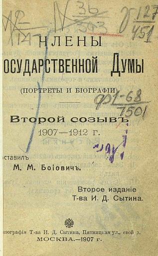 | Keywords: государственная дума государственнаядума второй созыв второйсозыв ргб российская государственная библиотека российскаягосударственнаябиблиотека электронный ресурс ргб электронныйресурсргб российская империя российскаяимперия 1907 rsl russian state library russianstatelibrary state duma stateduma russian empire russianempire боиович м.м. боиовичмм text document writing Источник: РГБ Члены Государственной думы : (портреты и биографии) : Второй созыв, 1907-1912 г. / cост. М. М. Боиович. - 2-е изд. - Москва : Тип. Т-ва И. Д. Сытина, 1907. - XXXVIII, 519 с., [1] л. ил. : ил., портр.; 12 см. Указ. dlib.rsl.ru/rsl01003000000/rsl01003732000/rsl01003732207/... Источник: РГБ Члены Государственной думы : (портреты и биографии) : Второй созыв, 1907-1912 г. / cост. М. М. Боиович. - 2-е изд. - Москва : Тип. Т-ва И. Д. Сытина, 1907. - XXXVIII, 519 с., [1] л. ил. : ил., портр.; 12 см. Указ. dlib.rsl.ru/rsl01003000000/rsl01003732000/rsl01003732207/... |