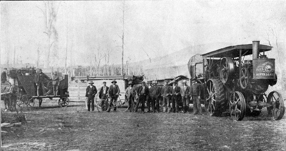 Keywords: tasmania blackandwhite monochrome outdoor black and white Power's threshing plant at Tunnack, with Buffalo Pitts traction engine. T R G Williams photo Power's threshing plant at Tunnack, with Buffalo Pitts traction engine. T R G Williams photo |