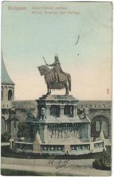 Keywords: 19091225 budapest konig stephan.jpg fr Vue de Budapest au début du XXe siècle 1909-12-25 dated by the sender of the postcard and by the postmark BUDAPEST -DEC 25 Vintage postcards private collection author other versions PD-old-70-1923 Statue of Stephen I of Hungary in Buda Castle Postcards of Budapest before 1918 Postcards of Austria-Hungary Taussig A Budapest Budapest in the 1900s Postcards uploaded by user Jean Housen Uploaded with UploadWizard |