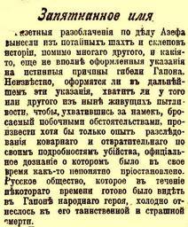 Keywords: Вырезка Слово-1909.jpg ru Ф агмент статьи Л Я Гу евич Запятнанное имя из газеты Слово по делу Гео гия Гапона Газета Слово Санкт-Пете бу г 703 от 8 фев аля 1909 года ет 1909-02-08 George Gapon Assassination of George Gapon PD-old