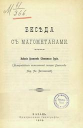 Keywords: Багин, Сергей Афанасьевич. Беседа с магометанами / [Свящ. Сергий Багин]. - Казань : Братство святителя Гурия, 1909 (Центр. тип.). - 15 с.; 23. Авт. указан в конце текста На 3 с. загл.: Из дневника миссионера. (Беседа с магометанами) <a href="http://dlib.rsl.ru/rsl01003000000/rsl01003755000/rsl01003755445/rsl01003755445.pdf" rel="nofollow">dlib.rsl.ru/rsl01003000000/rsl01003755000/rsl01003755445/...</a> ленинка ргб оцифровка противомусульманскаямиссия электронныйресурсргб историяказани историятатарстана