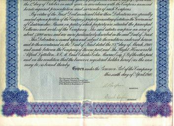Keywords: 1910. Новороссийское общество NRC003.jpg en Share Certificate No 2601 for 100 UK Pounds Sterling - New Russia Company Limited - Printed Published by Waterlow Sons London England - 6th April 1910 - The Original Share Certificate No 2601 is owned by Dr David E Probert and is in the Probert Family Archives Edwin James Williams - Great Great Grandfather of Dr David E Probert was employed by the New Russia Company Limited in the town of Hughesovka since 1961 - Donetsk as its Chief Mining Geologist from the 1870s to around 1905 1910 originally printed by Waterlow Sons London UK photographed by Dr David E Probert http //www valentina net/NRC/ Ди екция ово оссийского общества Directors of the New Russia Company Limited - Signed by Director - Archibald Balfour July 1840 - October 1922 other versions Custom license marker 2014 11 07 PD-old Files uploaded by Andrew Butko from various sources 20th century Stock certificates of New Russia Coal Iron and Rail-making Company Historical non-photos images of Donetsk by alphabet 1910 in Donetsk Uploaded with UploadWizard |