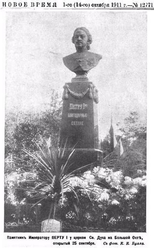 Keywords: 1911 нов врм петр.jpg ru Памятник Пет у I у це кви Святого Духа на Большой Охте 2015-12-23 овое в емя 1 октяб я 1911 год К К Булла other versions PD-old-70-1923 Photography Uploaded with UploadWizard