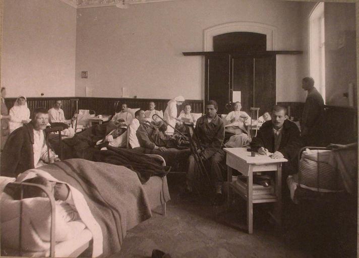 View Original:1914. 01. Сестры милосердия и раненые в палате лазарета при городском Ляминском приюте.jpg (2380x1712)