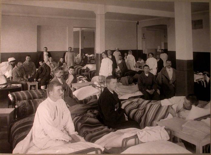 View Original:1914. 05. Раненые и медицинский персонал в палате лазарета, устроенного в Ермаковском ночлежном доме.jpg (2304x1696)