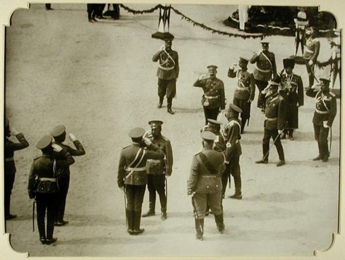 View Original:1914-1915. 06. Император Николай II принимает рапорт начальникапочётного караула 59-го пехотного Люблинского полка.jpg (500x376)
